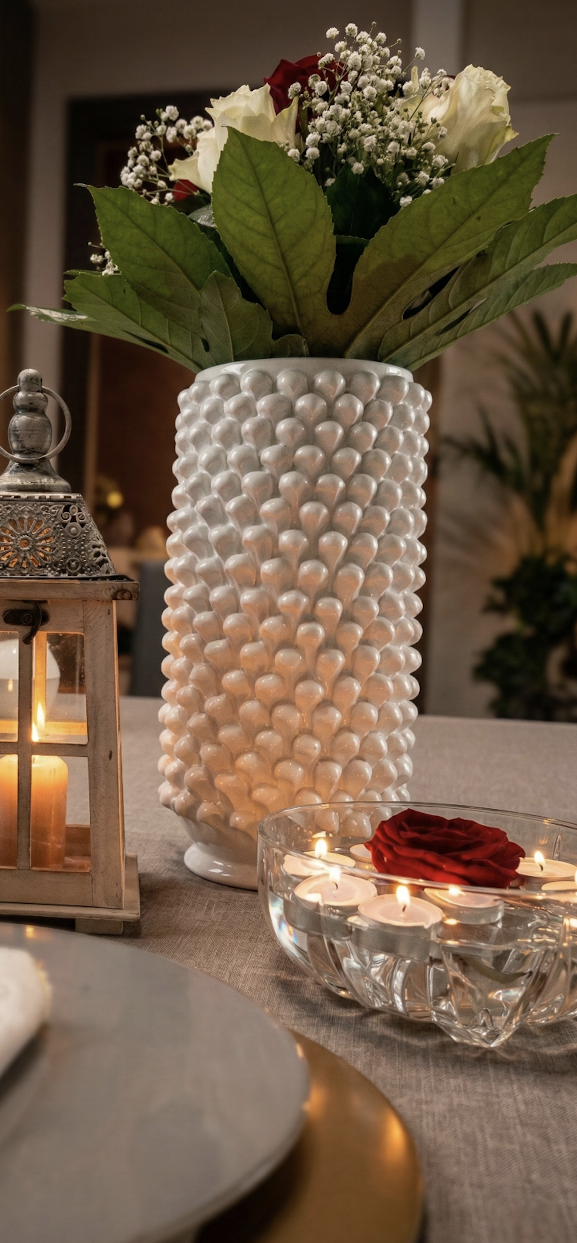 La nostra ispirazione nasce dall'ideale dell'artista di andare sempre oltre, creando opere che mutano e si trasformano, proprio come l'essere umano. Fissiamo l'attimo in un design particolare, declinandolo in varie forme che uniscono la ricchezza della tradizione siciliana all'innovazione continua. Ogni ceramica è un dialogo tra il passato e il presente, un ponte tra la storia e il futuro del design.